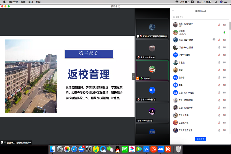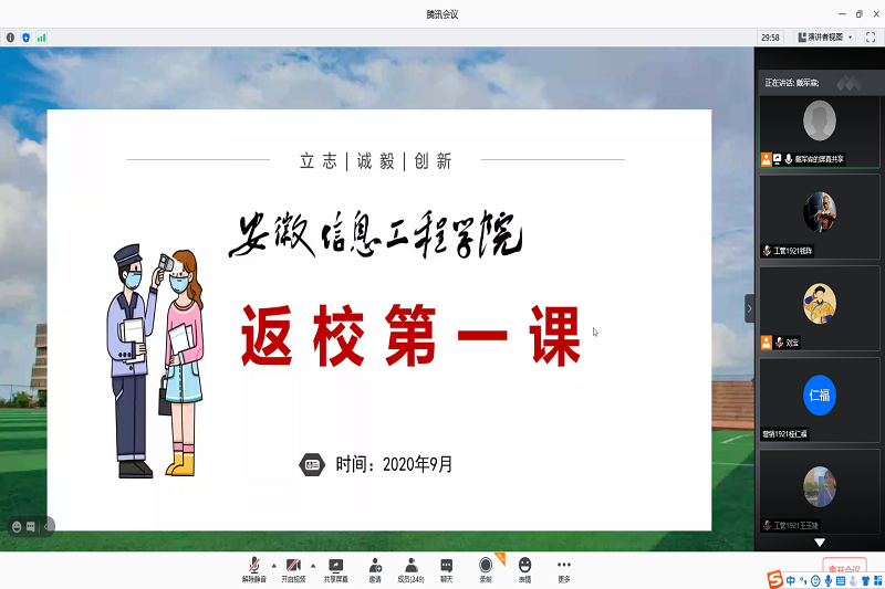 8月30日开始,学生陆续返校,为切实引导学生尽快适应常态化疫情防控背景下的校园学习与生活,管理工程学院通过腾讯会议召开了“返校第一课”主题班会,会议由各班辅导员主持。