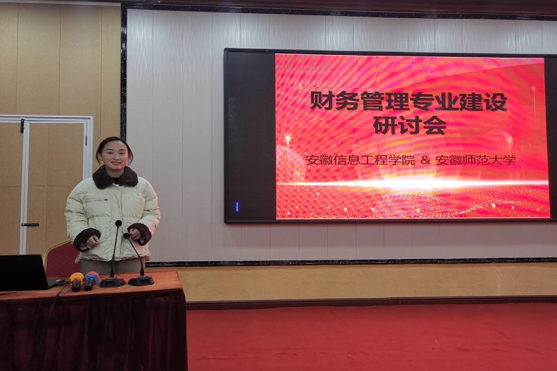 会议中,刘冰强调了财务管理专业建设的必要性,自2018年设立并招生以来,财管专业作为新招专业,近两年来有着较快的成长,在教学改革、学科竞赛等方面都有了初步的成果。然后由学院财务管理专业教师陈思婕就近两年来专业内的各类成果进行了总结,并由财务管理专业财会技能大赛负责教师江月亭介绍了参加本次安徽省财会技能大赛的过程和感想。最后,安徽师范大学代表教师对“如何进行专业建设”,”如何推进教师的团队建设”等问题,提出了各自的看法。