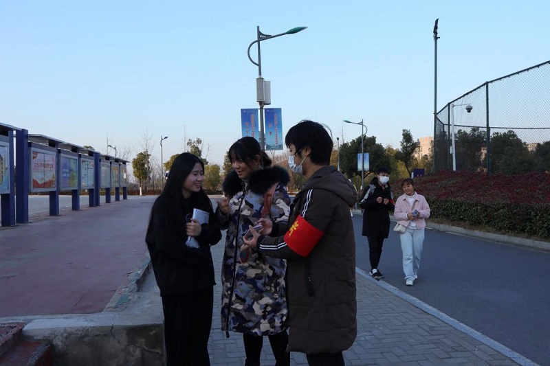 活动开始,同学们佩戴好口罩与志愿者袖章,分成三个小组共同完成此次活动。A小组在陶然餐厅门口准备好活动道具进行宣传并向全校学生征集关心福利院儿童的留言,B小组邀请校内同学一起拍摄暖心视频,C小组自行完成暖心视频的拍摄。
