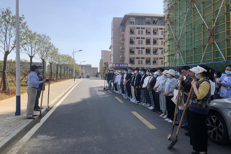 最是一年春光好,植绿爱绿正当时。正值第44个植树节来临之际,为深入贯彻落实习近平总书记关于生态文明思想及国家“劳动教育”方针,让学院学生在劳动中感悟生活,涵养品德。4月8日下午,管理工程学院组织师生于校内百草园开展了以“认领一棵树,育出一片绿”为主题的植树节暨校园美化劳动教育实践活动。学院执行院长刘冰、副院长曹长芳、院长助理于凤、学工主管邓辰、全体辅导员、教研室教师及大一大二部分学生参加。(刘冰、曹长芳动员)活动在学院师生中反响热烈,动员阶段,学院师生积极报名,争先恐后的认领属于自己的那一颗橘子树苗。活动伊始,师生齐聚百草园,认真聆听刘冰及曹长芳的动员教诲。他们叮嘱同学们要德智体美劳全面发展,不能忽视“劳”的作用,要培养劳动意识,努力成长为党和人民需要的有用之才。随后,师生们便两三人一组,拿起铁锹忙活起来,老师们一边劳动,一边和同学们交流技巧,植树现场一派繁忙景象。大家相互配合,挖坑、放树苗、填土、压实、浇水,认认真真、齐心协力栽下每一颗树苗。虽然天气炎热,但大家的热情丝毫不减,哪怕弄脏