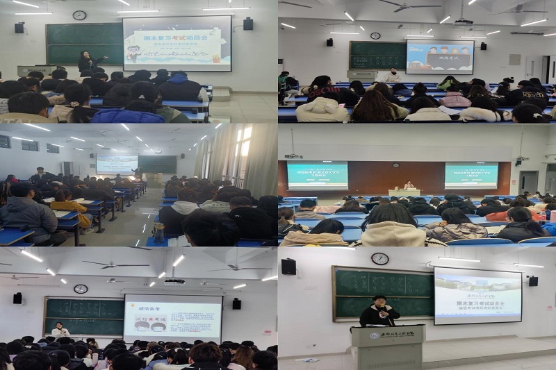 为进一步加强学风建设,严肃考风考纪,营造良好的学习氛围,提高学生诚信考试意识,同时加强学生寒假期间的安全教育意识。在期末考试来临之际,管理工程学院全体辅导员组织各年级各专业学生开展了期末诚信应考暨寒假安全教育主题班会。会上,各辅导员首先带领学生认真学习《安徽信息工程学院学生违纪处分办法(2021年修订版)》相关考试规定,同时对考试安排、补考、缓考、重修等各种问题进行详细解答,列举了考试作弊的恶劣影响,叮嘱学生应诚信考试、诚实做人。鼓励大家全力以赴准备期末考试,倡导同学们建立学习小组,通过小组形式来促进彼此之间学习上的互帮互助,共同努力,共同进步。班会最后,组织全体学生签署诚信考试承诺书,承诺严格遵守考试制度,拒绝作弊行为,努力塑造纯洁公正的管理工程学院良好考风。(图为各年级召开诚信应考主题班会)随后,辅导员提醒同学们近期国内疫情反复,寒假期间疫情防控不能放松,务必做好个人防护,外出正确佩戴口罩,做好常态防护,必须时刻保持清醒,不能掉以轻心,更不能疏忽懈怠。注意个人卫生,勤洗手,减少外出,