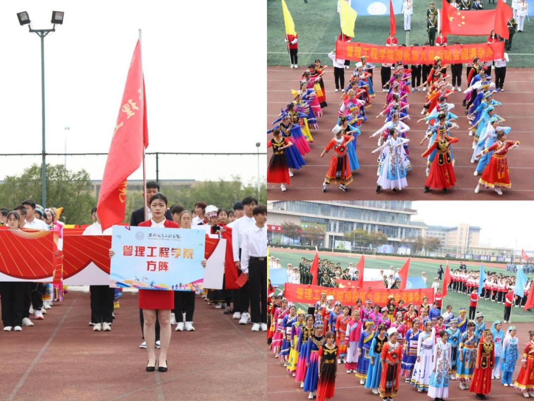 2021年10月15日,安徽信息工程学院第九届秋季田径运动会在田径场上隆重举行。在本次运动会中,管理工程学院的学子们团结奋进,勇敢拼搏,恶劣天气依旧挡不住大家逐梦赛场的决心与势如破竹的锐气,展现了管理工程学院学生良好的精神风貌和高涨的运动热情。为了挑选优秀运动员代表学院参加运动会,管理工程学院于9月26日及29日开展了热烈的运动会选拔工作,通过预选赛选拔出一批优秀的运动健儿组成了管理工程学院代表队。同时为了在运动会开幕式上展现管理工程学院的风采,由不同年级的志愿者们组成的民族方阵进行了为期一周的方阵训练,管理工程学院学工主管兼党务秘书邓辰,辅导员卫雨婷、张涛和张玉琳,同时邀请教师张婷婷参观并指导了方阵训练。由于天气原因延迟至10月21日的方阵展演上,管理工程学院的民族方阵,穿着特色的民族服饰,迈着整齐的步伐,带着昂扬的气势经过主席台,并表演了“爱我中华”舞蹈;他们在主席台前拼成“1921-2021建党100周年”与“AIIT 管理工程”的字样,高举红旗,精神饱满,朝气蓬勃