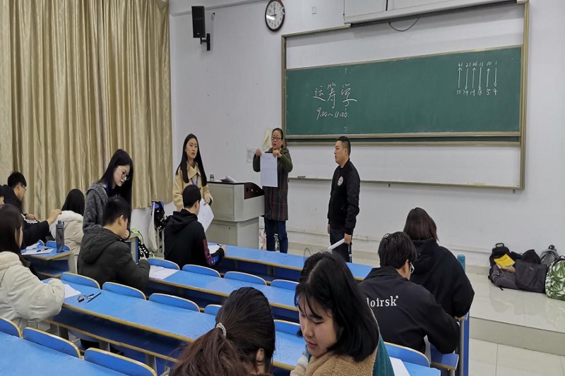 管理工程学院20-21学年秋季学期的第一场考试于2020年12月8日上午9点正式开始,本次考试为疫情防控进入常态化阶段后学院提前组织的第一批次的线下期末考试,学院领导高度重视。为了规范和保障期末考试工作的顺利进行,以良好的考风促进学风建设,由卢晓莉副院长带领教学秘书吴磊老师、教务员承友慧老师深入考场一线,逐一检查考场秩序。图 学院教学管理人员巡查考场为了严肃考风考纪,提升学生学风,学院领导要求教学管理部门和学生管理部门共同做好期末考试工作。首先,加强教师试卷命题审核流程,层层把关,提高命题质量,体现区分度。其次,要求各辅导员强抓学风工作,召开专门的主题班会,强化学生考试诚信教育;第三,要求监考教师按时监考、严格监考,并做好考试试卷材料的清点工作。(文/图 吴磊 核/审 卢晓莉)